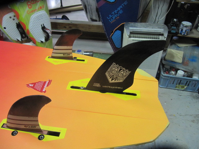 フィンはスラスターとクアッド両方付属します。塗装の剥がれた箇所をセルフリペアした箇所が多数あります。